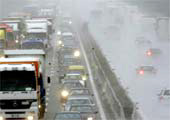 L’elevata pericolosità della grandine per la circolazione stradale deriva dal fatto che gli automobilisti non sono abituati ad affrontarla in quanto si tratta di una condizione meteorologica abbastanza rara. Molto più frequente della grandine, soprattutto in certe aree del Paese è invece la nebbia, che si colloca al secondo posto nella graduatoria per la gravità degli incidenti stradali in relazione alle condizioni atmosferiche. Con la nebbia nel 2005, secondo lo studio di Federpneus, vi sono stati 40 morti per ogni mille incidenti stradali. L’alta pericolosità della marcia con la nebbia si spiega soprattutto con il fatto che gli impatti possono essere molto violenti in quanto gli ostacoli appaiono spesso all’improvviso e gli automobilisti tengono una velocità superiore a quella che consentirebbe di fermarsi in tempo utile. Particolarmente insidiosi sono poi i banchi di nebbia perchè l’automobilista se li vede comparire davanti all’improvviso e ancora una volta a velocità superiori a quelle che sarebbero necessarie per affrontare in sicurezza eventuali ostacoli. Con la nebbia poi il fondo stradale è spesso umido, se non addirittura bagnato, ed è quindi scivoloso. Il problema del fondo stradale bagnato si ha però soprattutto con la pioggia. Con questa condizione atmosferica per ogni 1.000 incidenti ci sono 25 morti. È un tasso di mortalità in po’ più alto di quello che caratterizza la guida in condizioni di tempo sereno (23 morti per 1.000 incidenti) perché la pioggia è una situazione che la maggior parte degli automobilisti sono preparati ad affrontare in quanto è frequente. Il pericolo con la pioggia aumenta ovviamente per la scivolosità del fondo che rende più difficile la frenata e può comportare anche problemi di tenuta di strada.